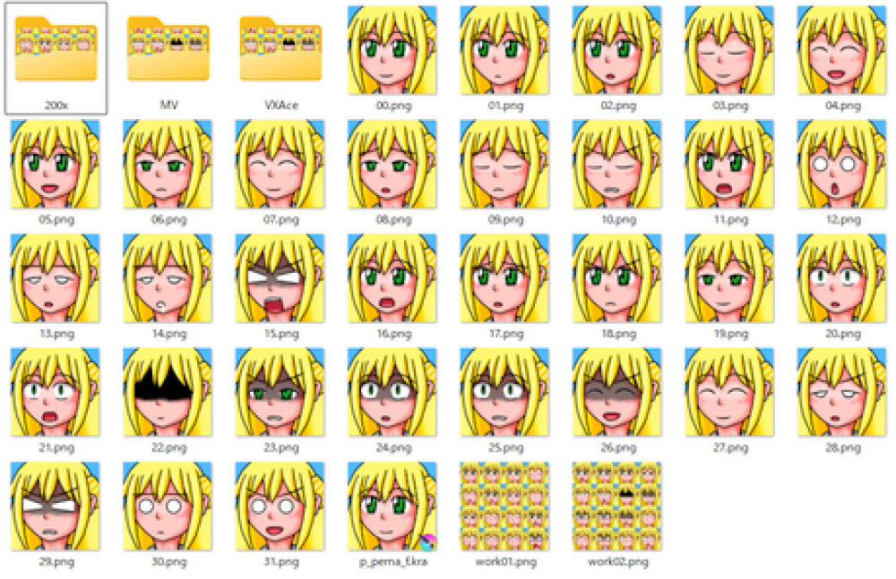 ただ、オリジナルの顔グラは実際にゲームで使ってみると、特定のパターンに偏ってしまう状況になってしまったので、ゲーム内で使いそうなのも増やした。