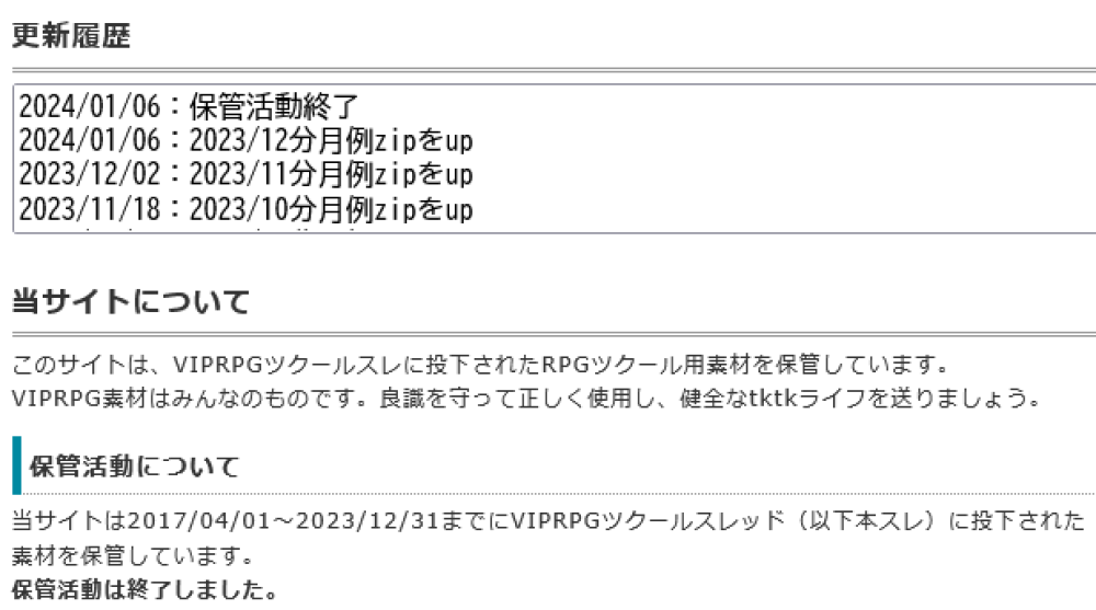 それも今日これからのものでなく、これまでの初代保管庫~今に至るまでの素材ひっくるめてすべて総合的かつ持続的にやっていけるもの、デカいこと言うとVIPRPG決定版レベルのものを作らないとダメかな、と思っていたり。